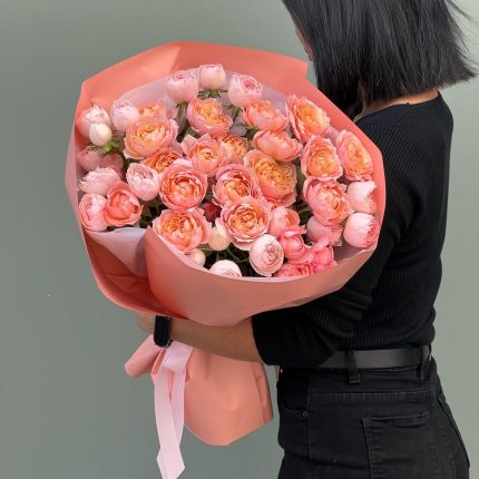 Евро-Букет из Роз Quicksand и Кустовой розы + открытка ручной работы в подарок