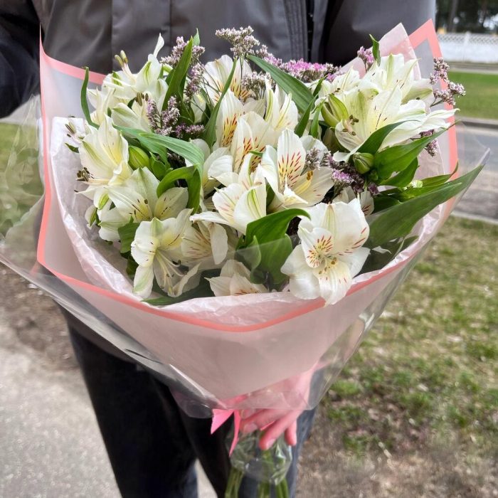 Альстромерия – 5 шт. Лимониум – 2 шт. Упаковка дизайнерская – 1 шт.