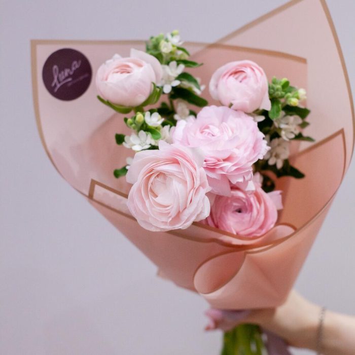 Ранункулюс – 5 шт.оксипетанум – 3 шт.Упаковка – 1 шт.