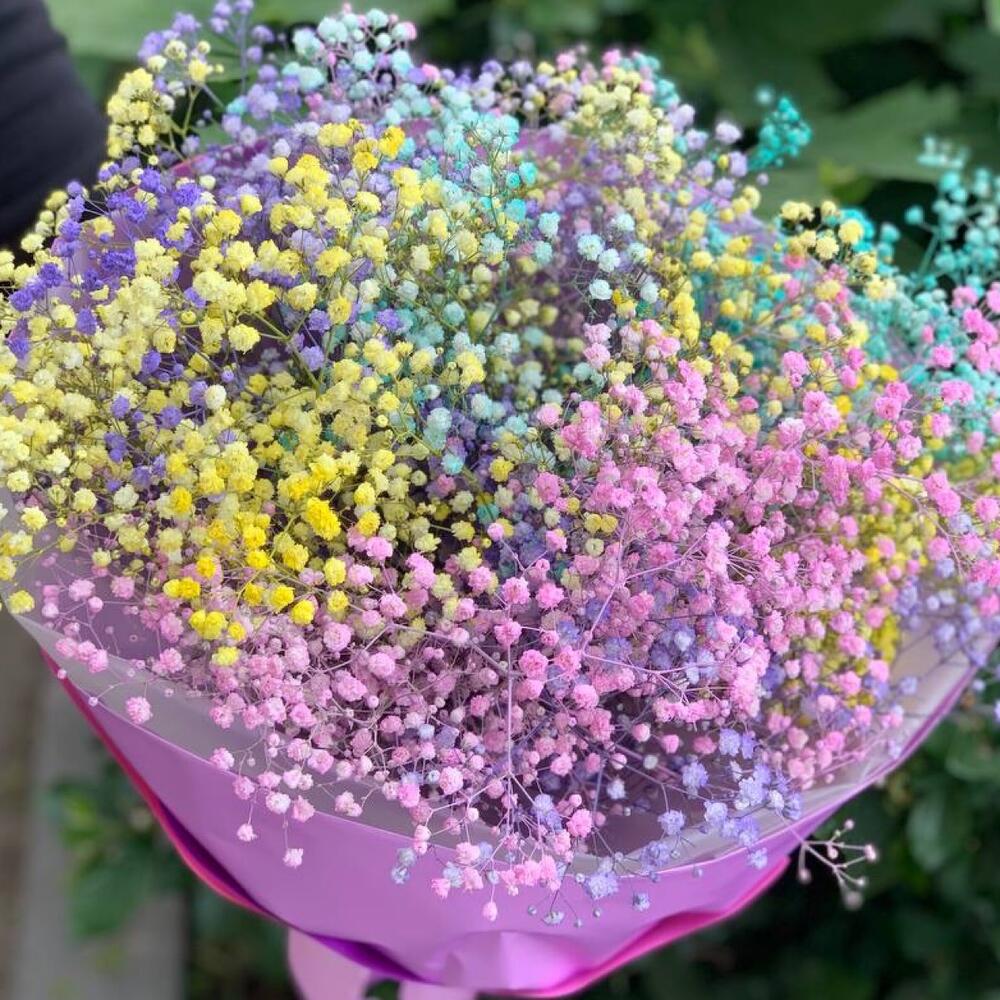 Гипсофила – 7 шт.Упаковка дизайнерская – 2 шт.Лента атласная – 1 шт.