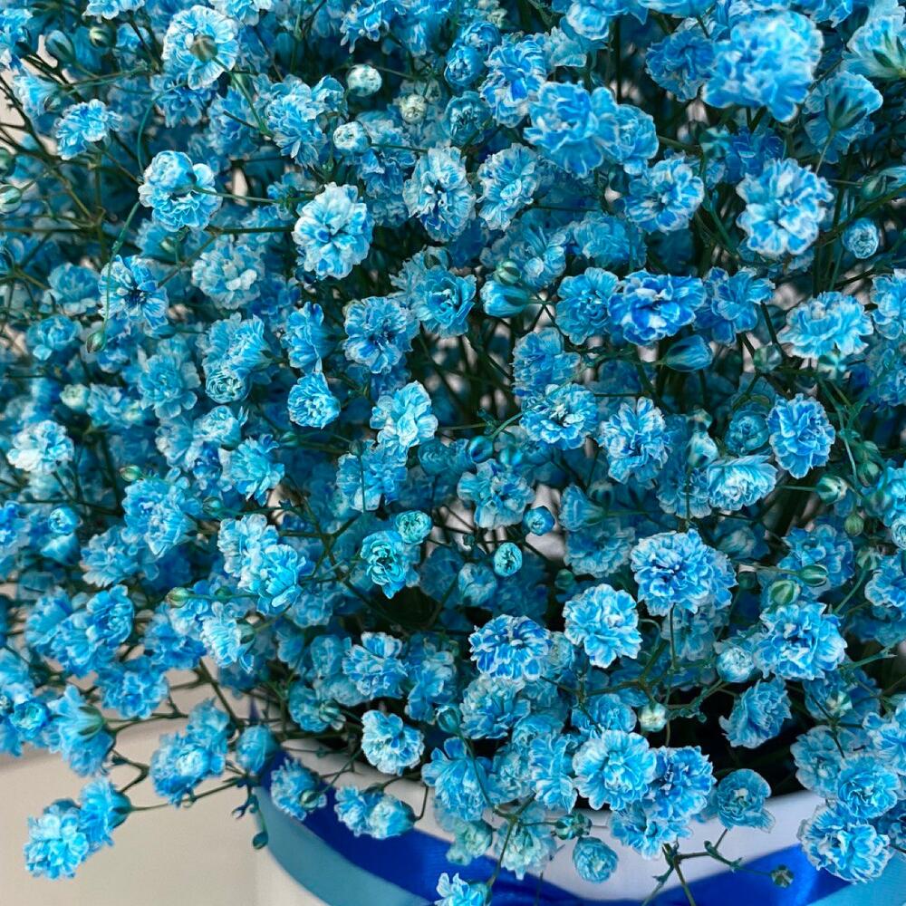 Гипсофила – 9 шт.Шляпная коробка с лентами – 1 шт.Оазис флористический – 1 шт.