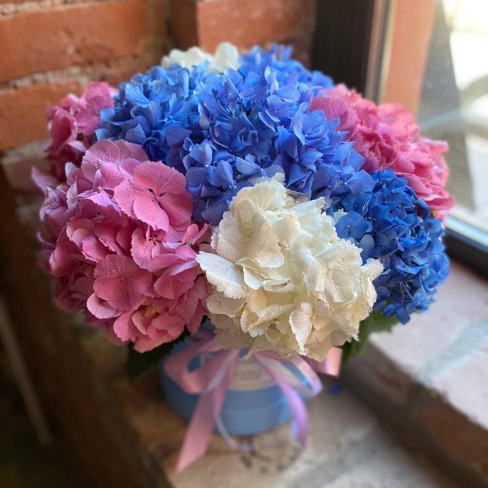 Гортензия – 9 шт.Оазис – 3 шт.Шляпная коробка – 1 шт.