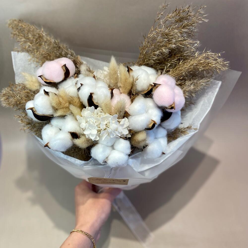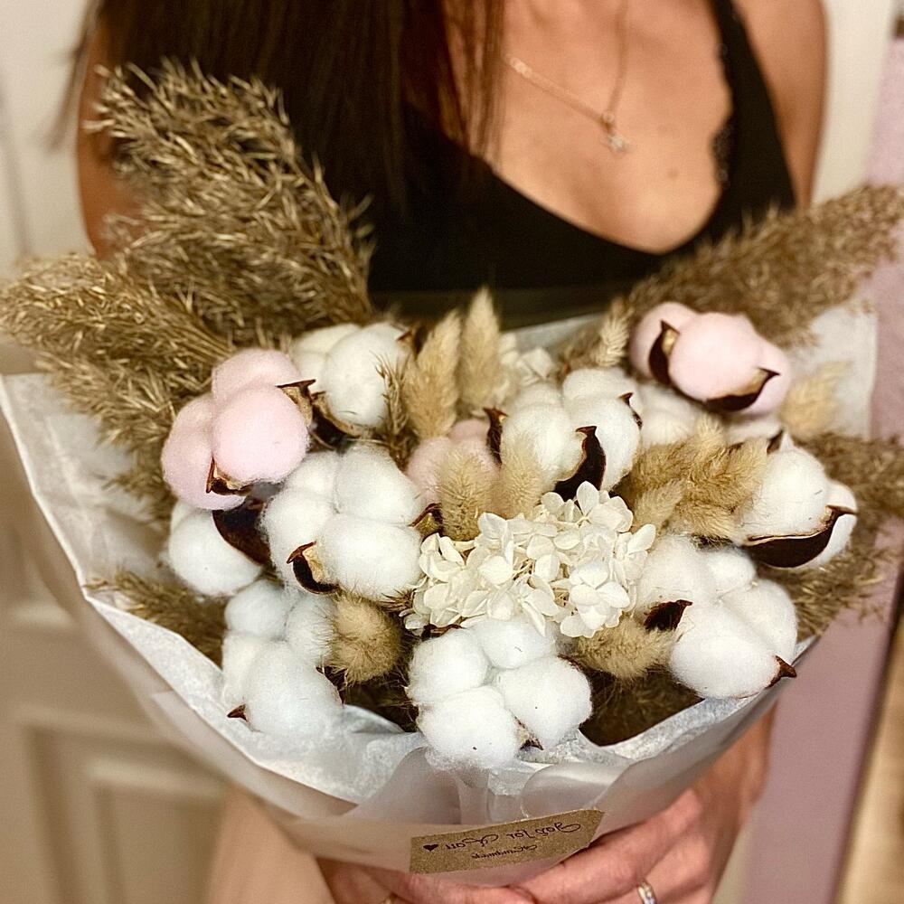 Хлопок – 13 шт.пампасная трава – 4 шт.гортензия стабилизированная – 1 шт.