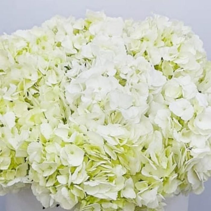 белые гортензии – 15 шт.коробка шляпная большая белая – 1 шт.