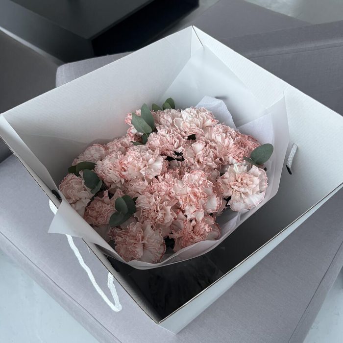 25 розовых гвоздик с эвкалиптом (букет N 27)