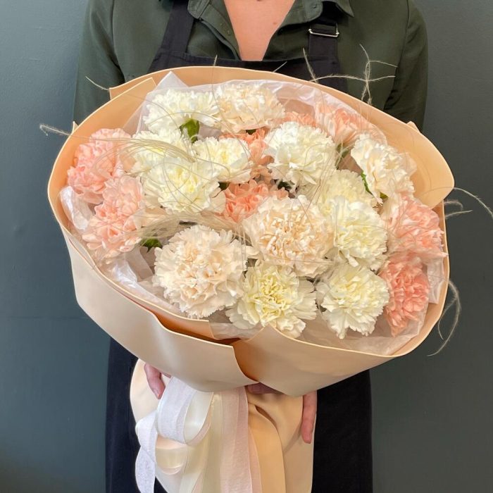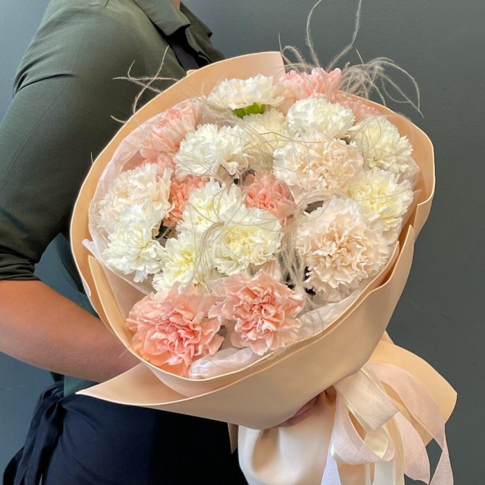 Букет из нежных гвоздик с сантини и гипсофилой