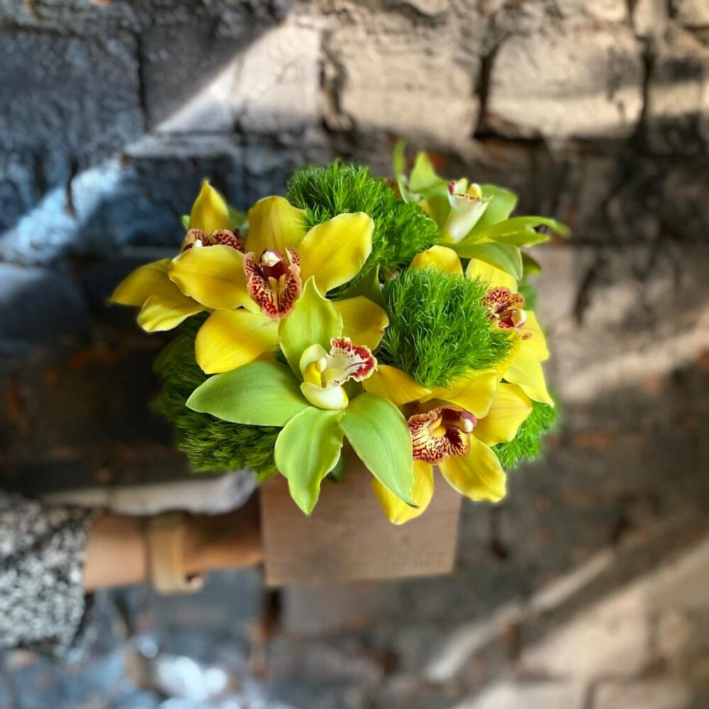 ЦИМБИДИУМ – 11 шт.Диантус – 6 шт.Оазис – 1 шт.Ящик – 1 шт.