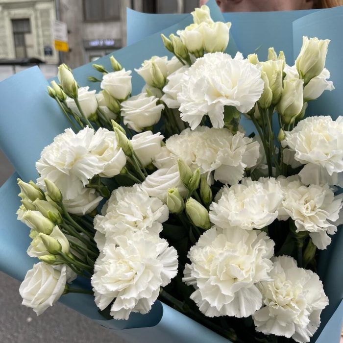 ВЕРСАЛЬ белоснежный букет из диантусов и лизиантусов