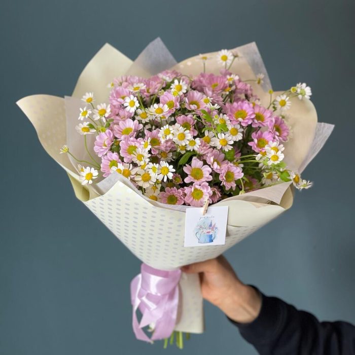 Букет с ромашками и кустовой хризантемой “Дыхание лета”