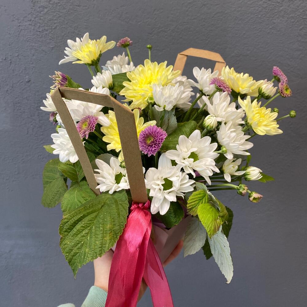 Букет с хризантемой и диантусами