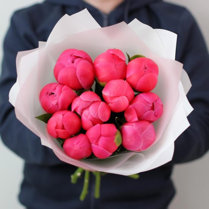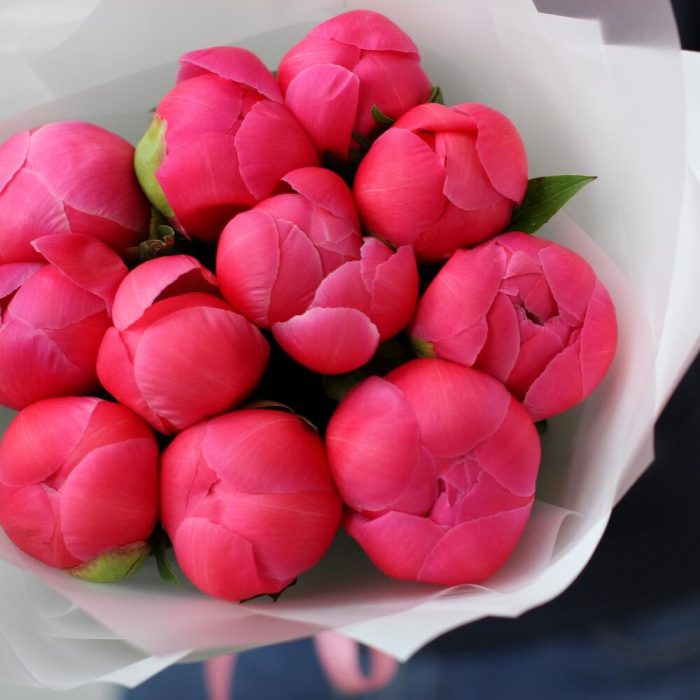 Лента атласная – 1 шт.Упаковка дизайнерская – 4 шт.Пион коралл шарм – 11 шт.