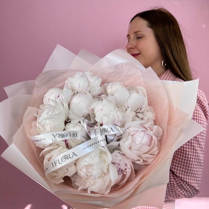 Пион – 15 шт.Лента атласная – 3 шт.Дизайнерская упаковка – 1 шт.