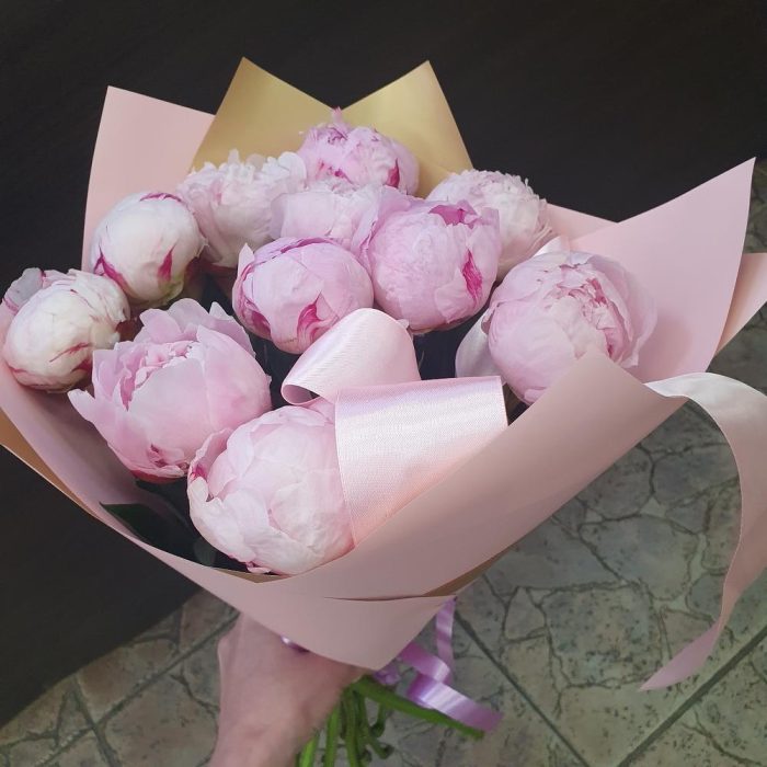Пион Сара Бернар – 11 шт.Упаковка дизайнерская – 1 шт.Лента атласная – 1 шт.