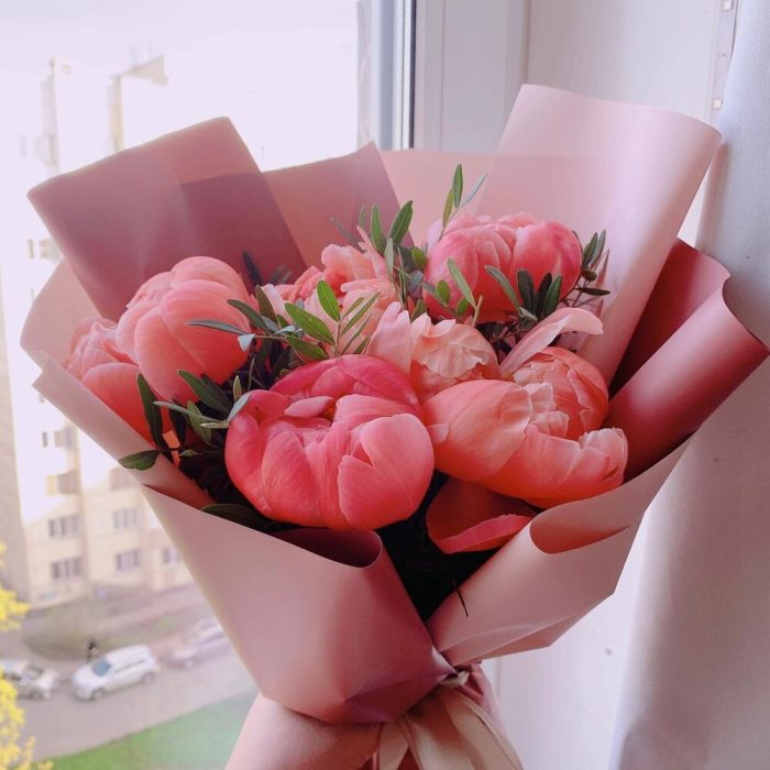 Очаровательный букет из изысканных, свежих и самых желанных цветов.В составе: пионы сорта корал шармБукет цветов — обязательный презент для прекрасной половины человечества. Это красивый способ сделать женщину счастливой.Чтобы букет радовал дольше необходимо:❤ Ставить его в прохладном месте, избегая отопительных приборов и прямых солнечных лучей. ❤ Наполнить вазу большим количеством воды. ❤ Как можно чаще освежать срез и воду. Почему выбирают нас? – Работаем на качество. – В подарок к каждому букету витамины для цветов. – Бережно упакуем в транспортировочную пленку, чтобы защитить во время доставки от любых погодных условий. – Приложим инструкцию, как правильно ухаживать за цветами.Сохраняйте товар в подборках, чтобы не потерять
