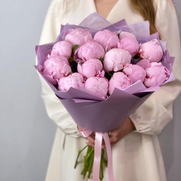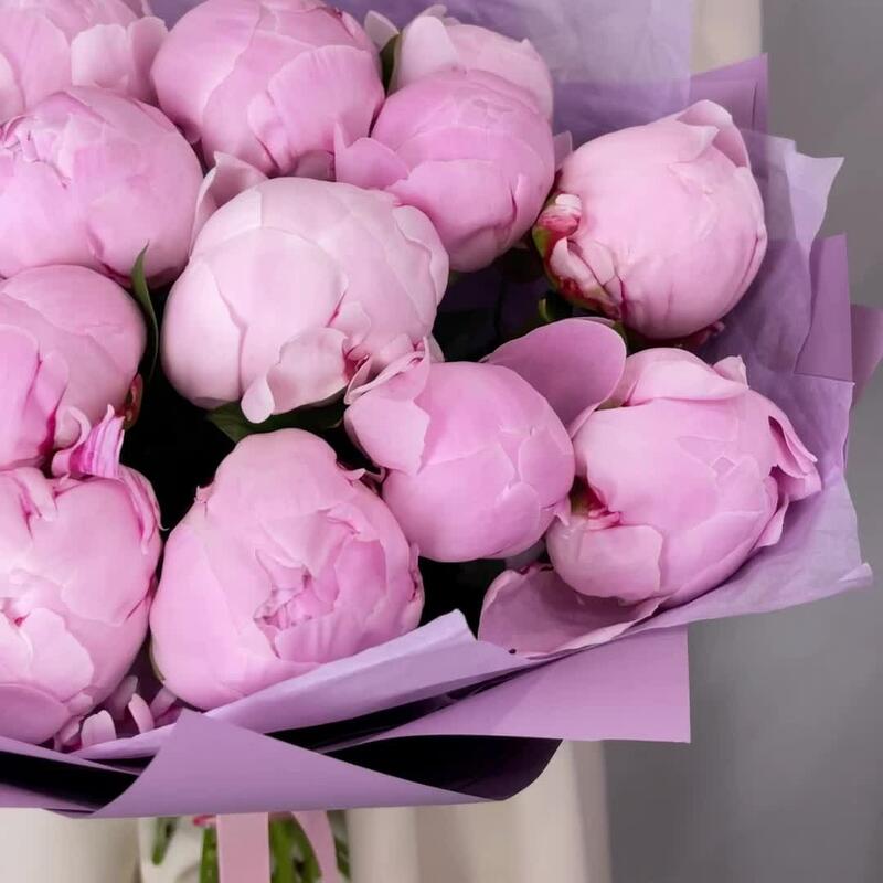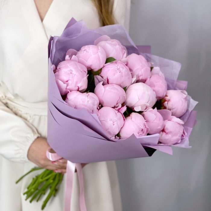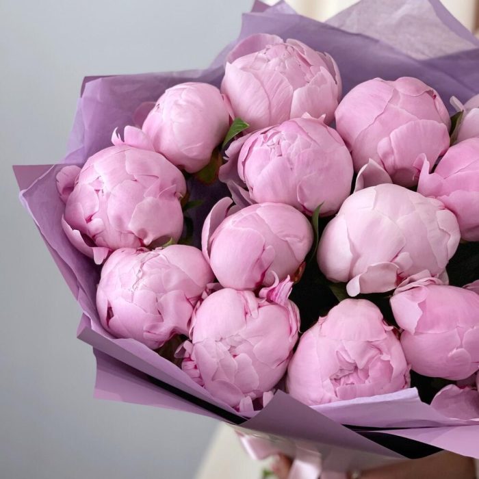 “Пиономания”: 13 розовых пионов в упаковке