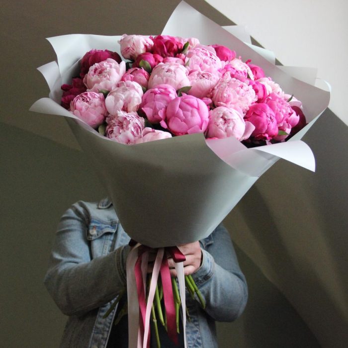Упаковка – 3 шт.Лента атласная – 2 шт.Пион Голландия – 35 шт.