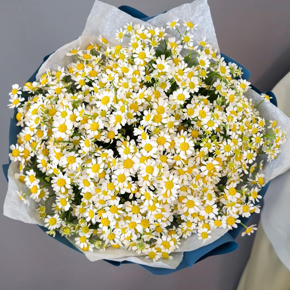 Упаковка – 1 шт.Ромашка кустовая – 21 шт.Аквапак – 1 шт.питательная смесь для срезанных цветов – 2 шт.