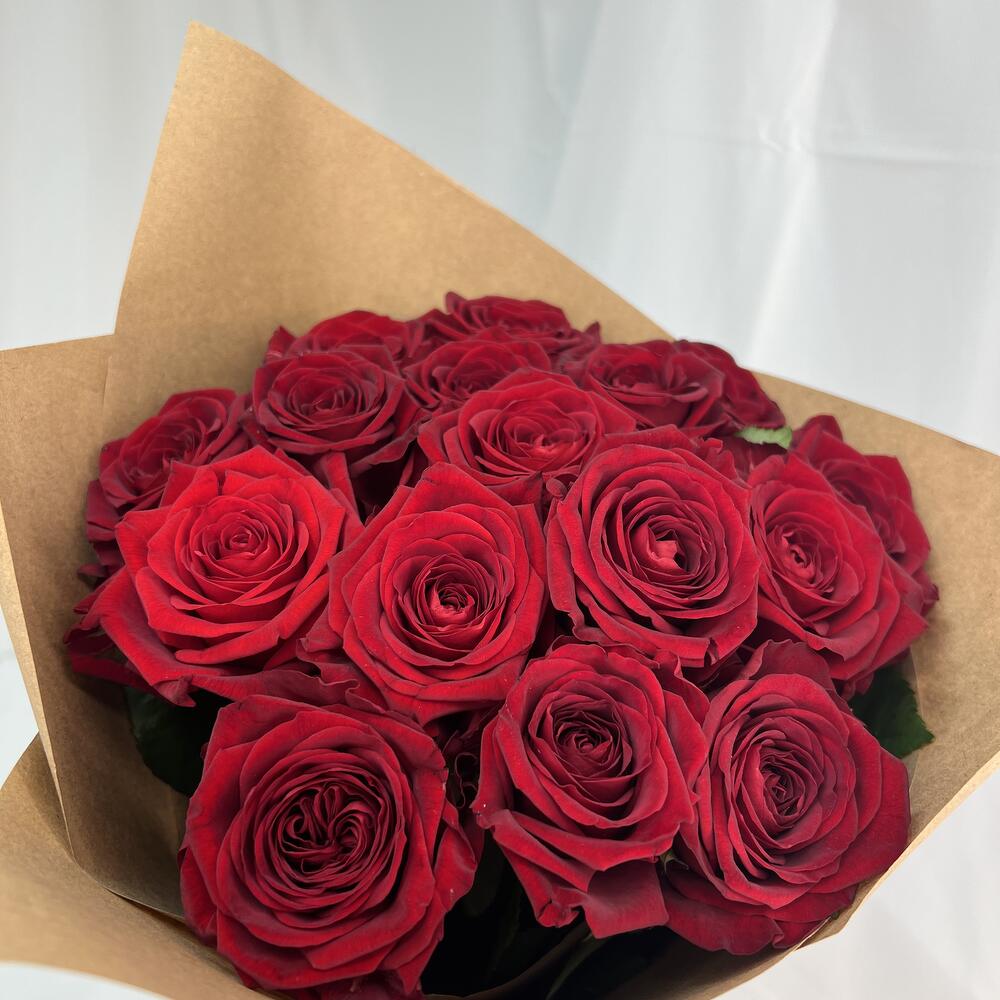 роза red naomi 50 см – 15 шт.Крафт упаковка – 1 шт.атласная лента (красная) – 1 шт.