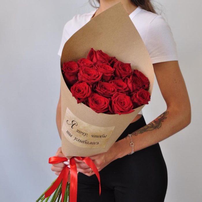 Роза – 15 шт.Крафт упаковка – 1 шт.