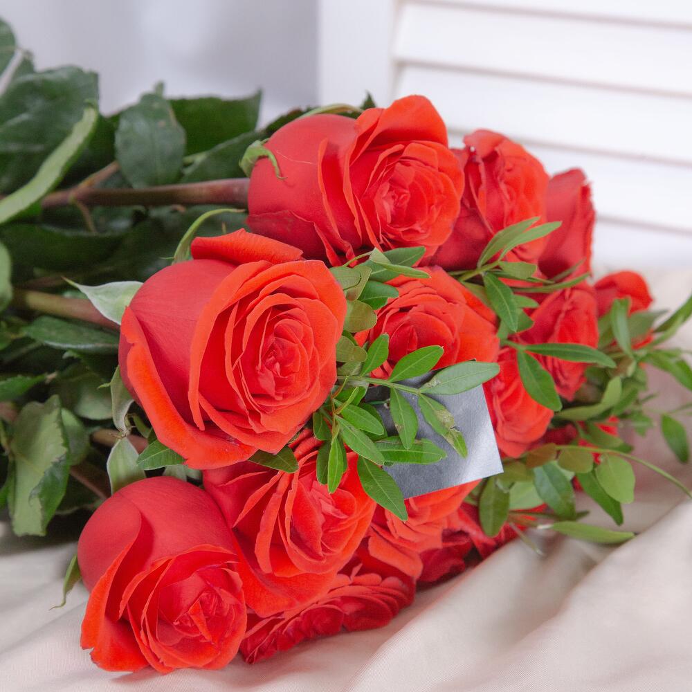 15 ярко-красных роз с фисташкой