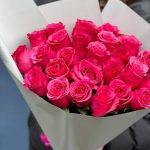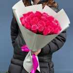 25 малиновых роз в стильной упаковке