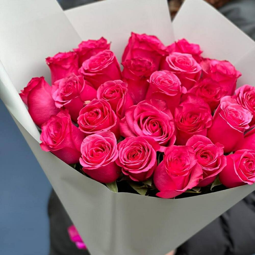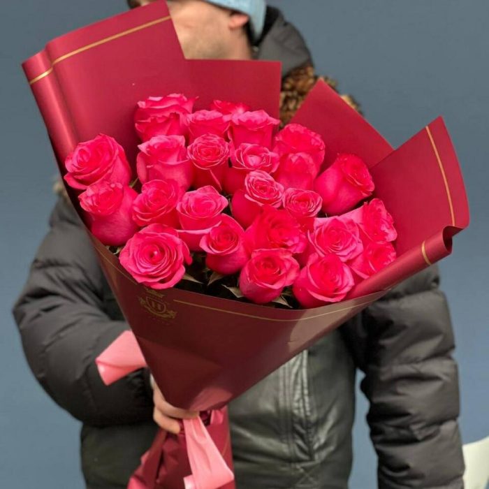 25 малиновых роз в стильной упаковке