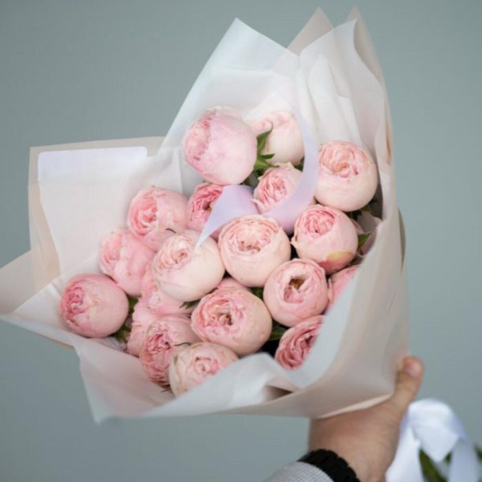 11 кустовых пионовидных роз в дизайнерской упаковке