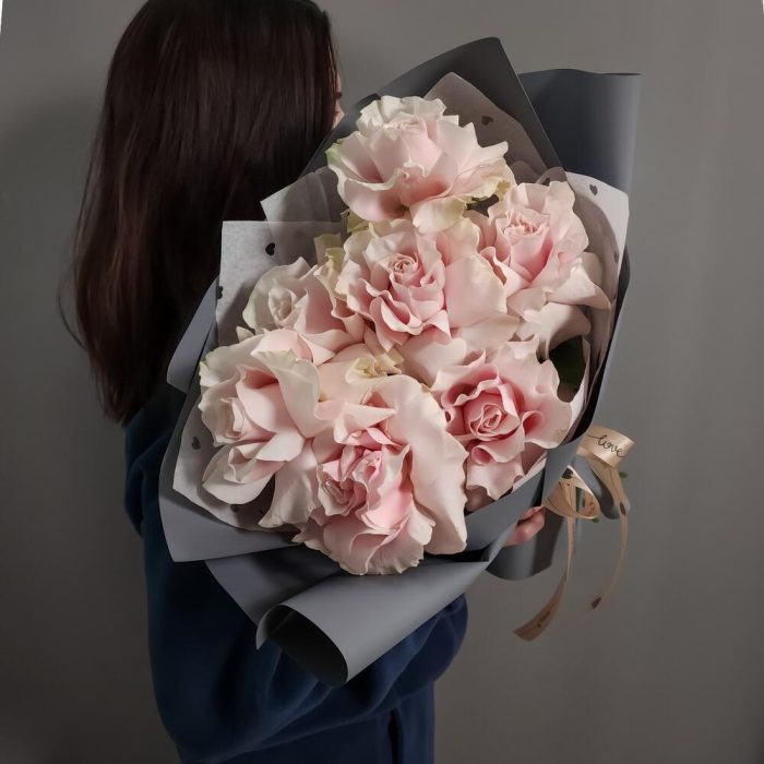 Упаковка дизайнерская – 1 шт.Аквапак – 1 шт.Средство для продления жизни цветов – 2 шт.вывернутая роза пинк мондиаль – 7 шт.