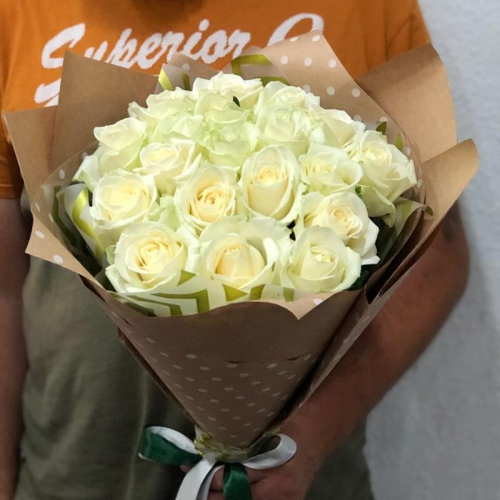 Метки: 19 роз, Белые розы, На свадьбу, от 2000 до 3000 руб, Роза 50 см