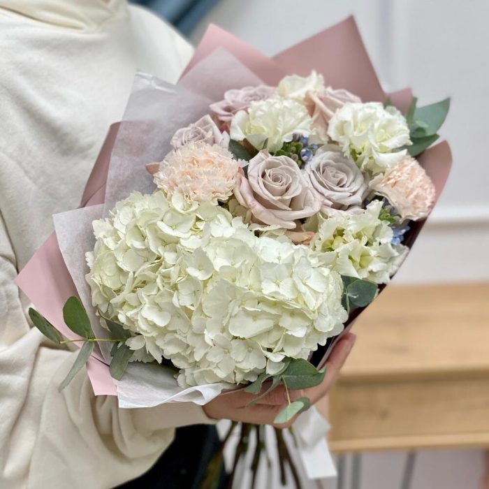 Категории: Гвоздики, Гортензии, Лизиантусы, Розы