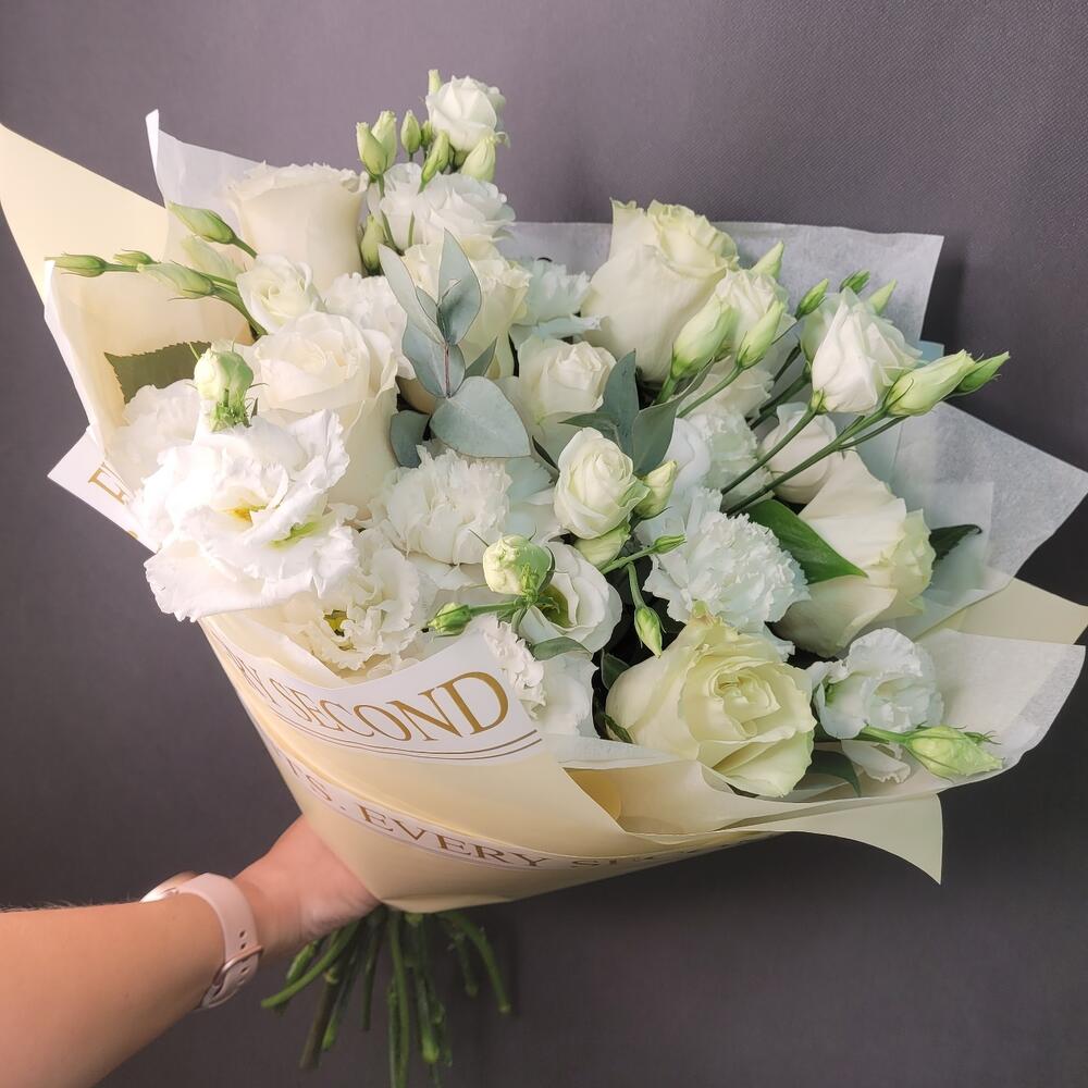 Категории: Гвоздики, Лизиантусы, Розы
