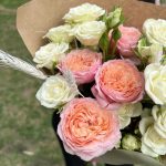 Роза кустовая пионовидная джульетта – 1 шт.роза кустовая сноулейк – 3 шт.Колосья пшеницы – 1 шт.