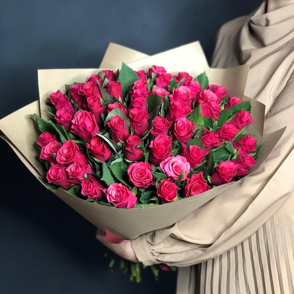 Роза – 51 шт.Крафт упаковка – 3 шт.