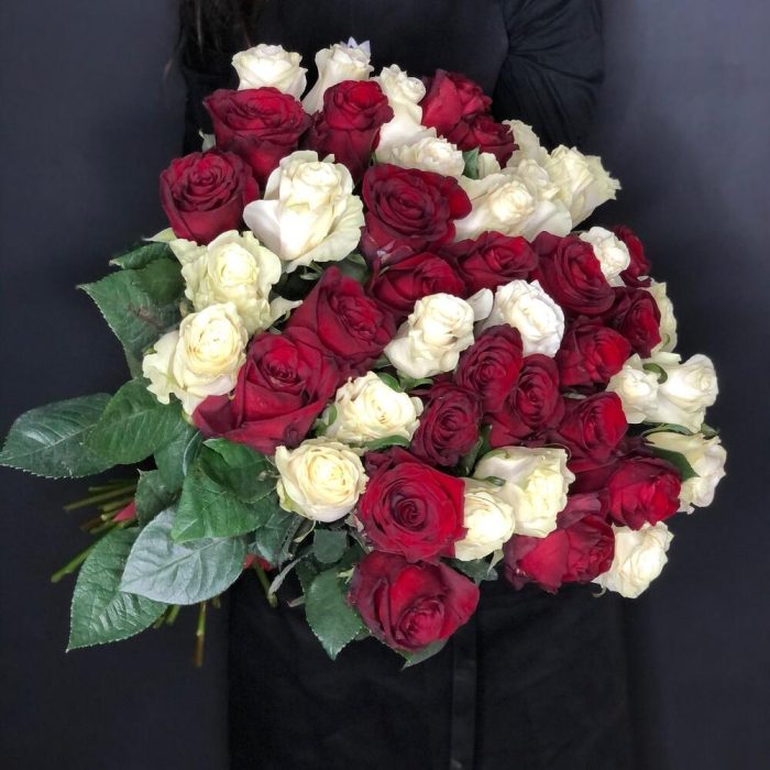 Роза Эквадор 60 см – 51 шт.Лента атласная – 3 шт.
