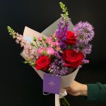 Роза Эквадор – 3 шт. Луковичные растения – 3 шт. Пионовидная кустовая роза – 1 шт. Лимониум – 2 шт. Упаковка дизайнерская – 2 шт. Открыточка с вашими пожеланиями – 1 шт. инструкция по уходу за цветами – 1 шт.