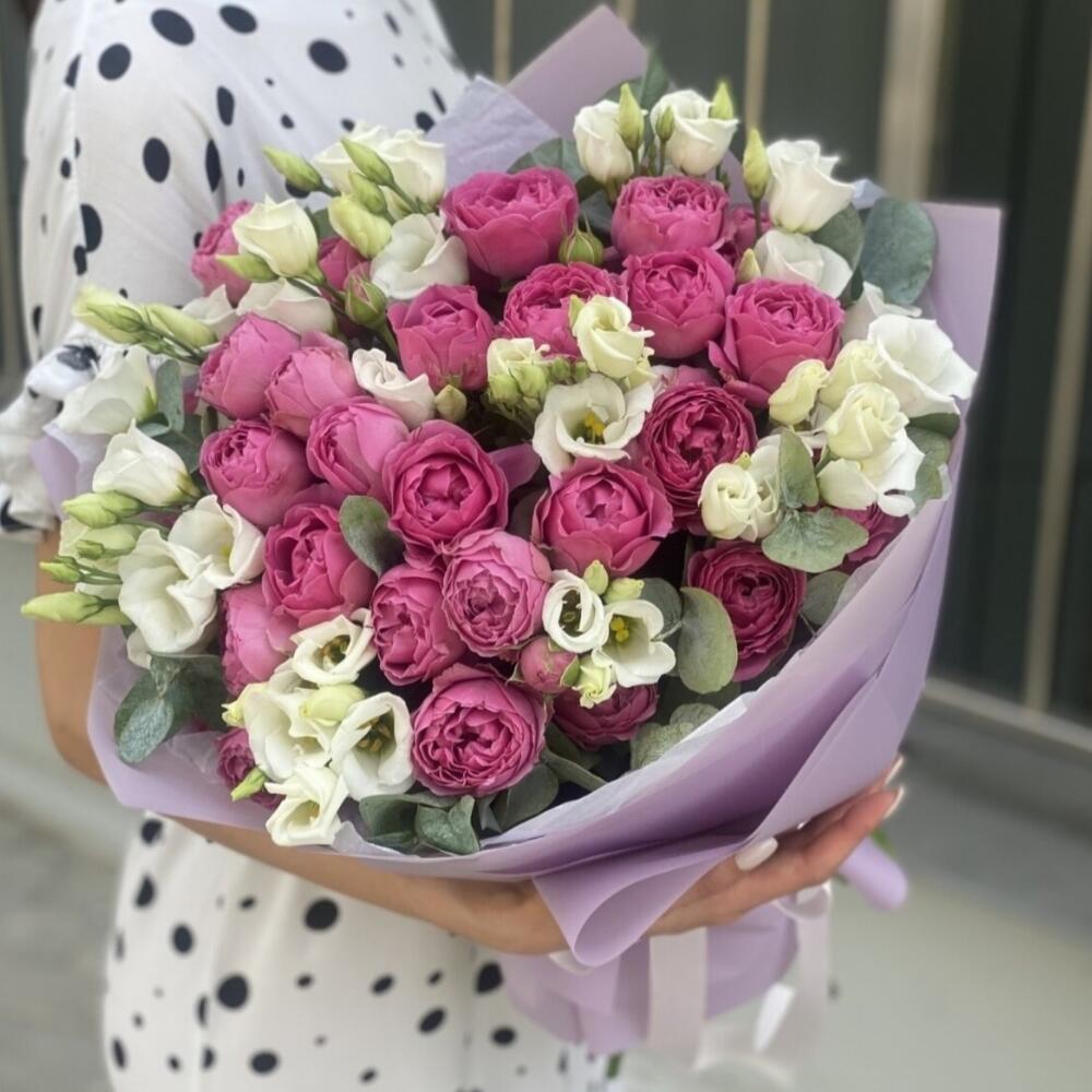 Гвоздики, Кустовые розы, Лизиантусы, Пионовидные розы, Розы
