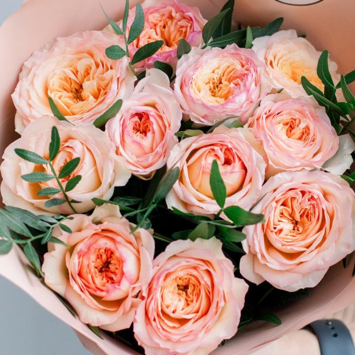 роза пионовидная 40 см flash back персиковая – 11 шт.Фисташка – 3 шт.
