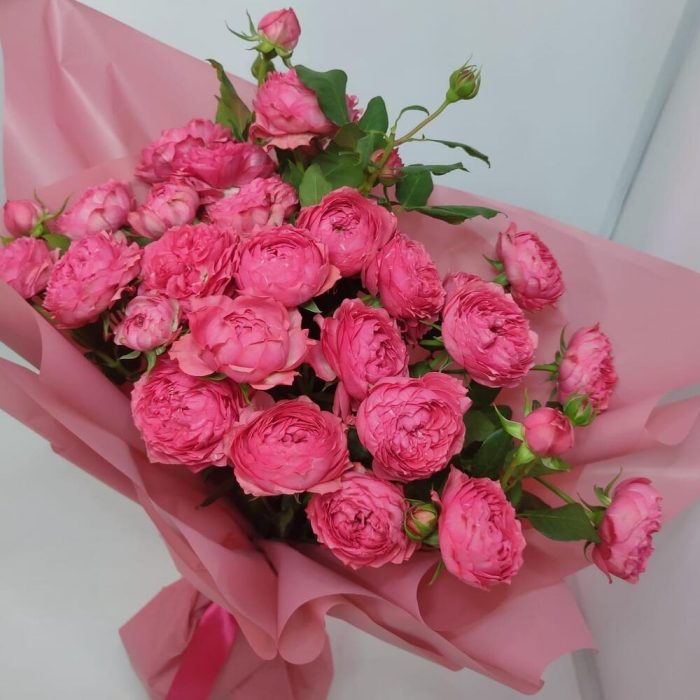 роза пионовидная кустовая “джульетта” – 5 шт.Дизайнерская упаковка – 1 шт.