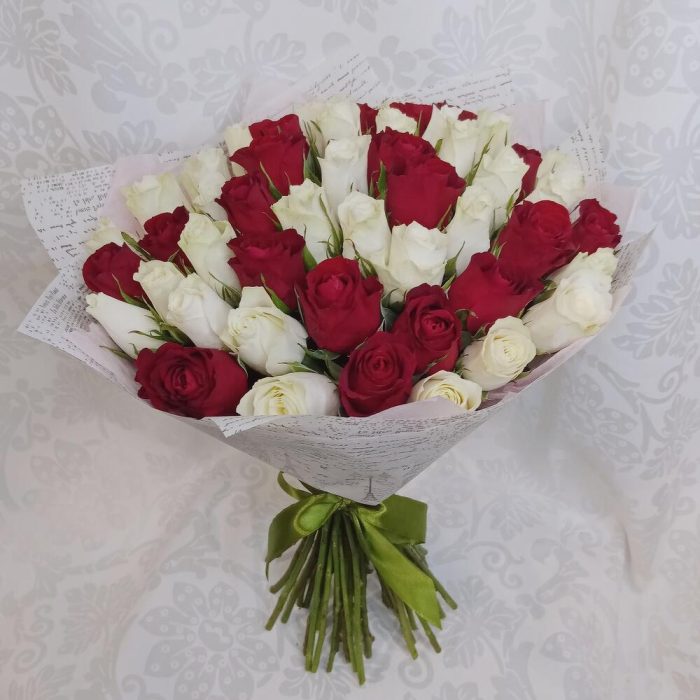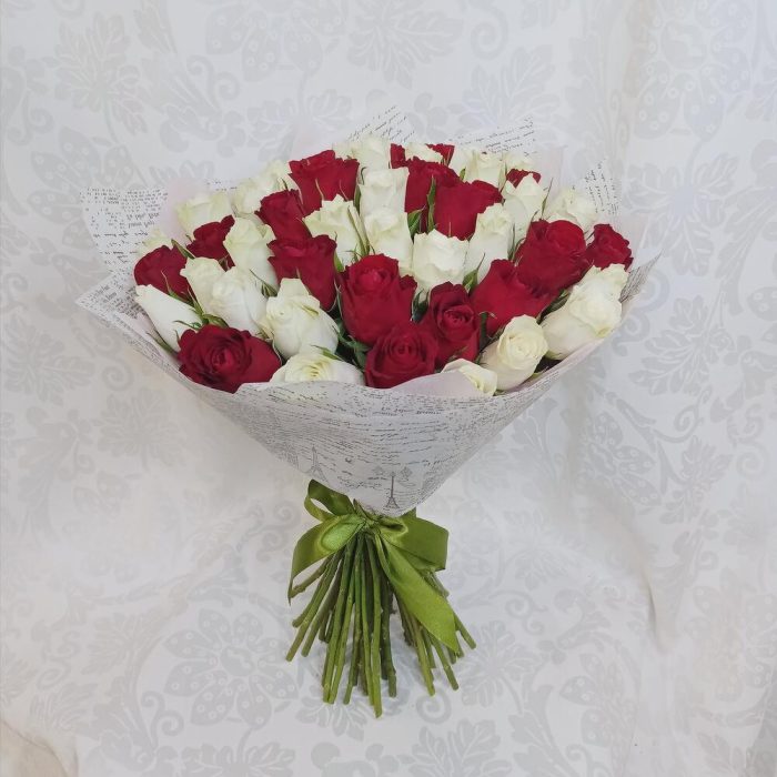 Букет из 51 розы красно-белый микс