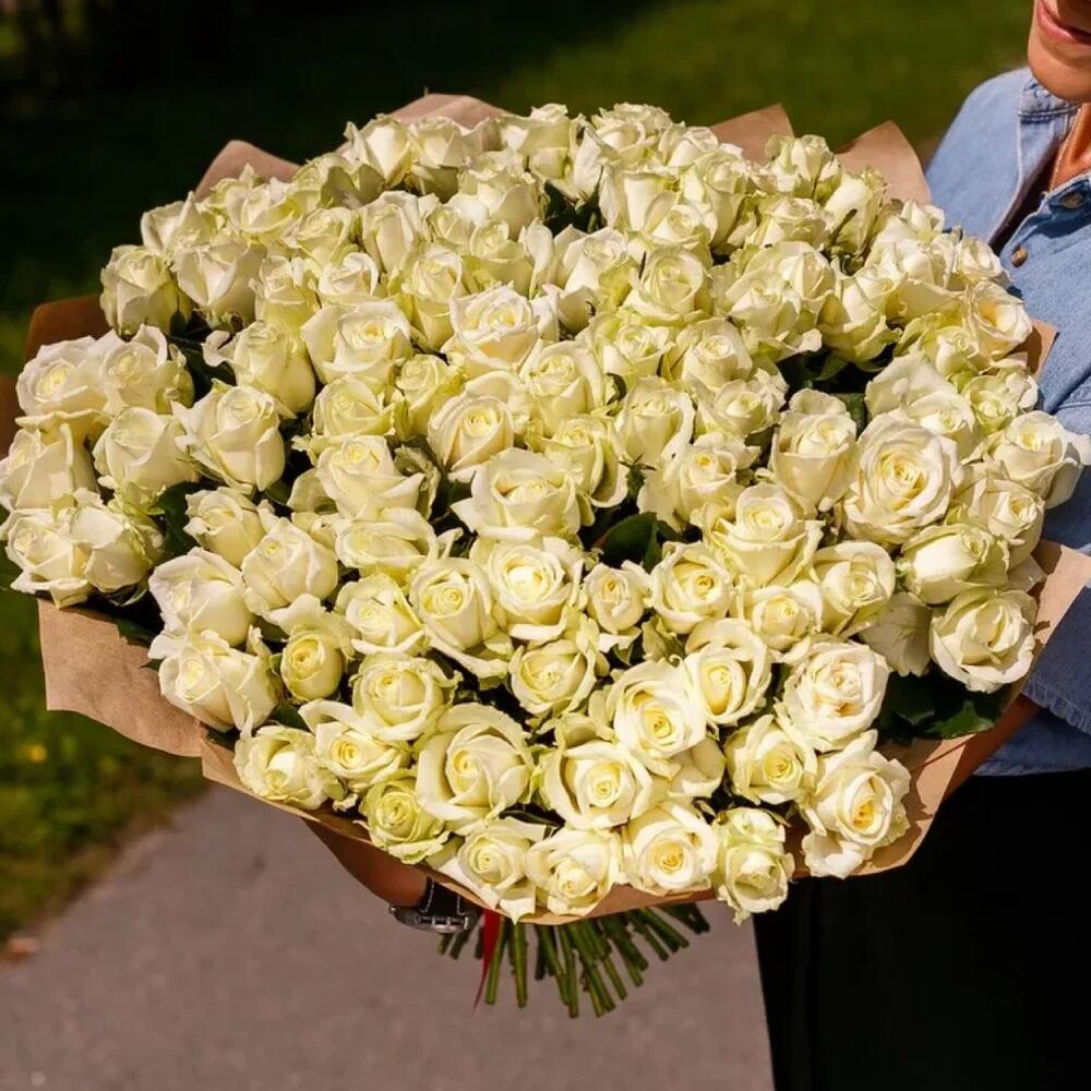 Букет из 75 Белых Роз 50см в крафте