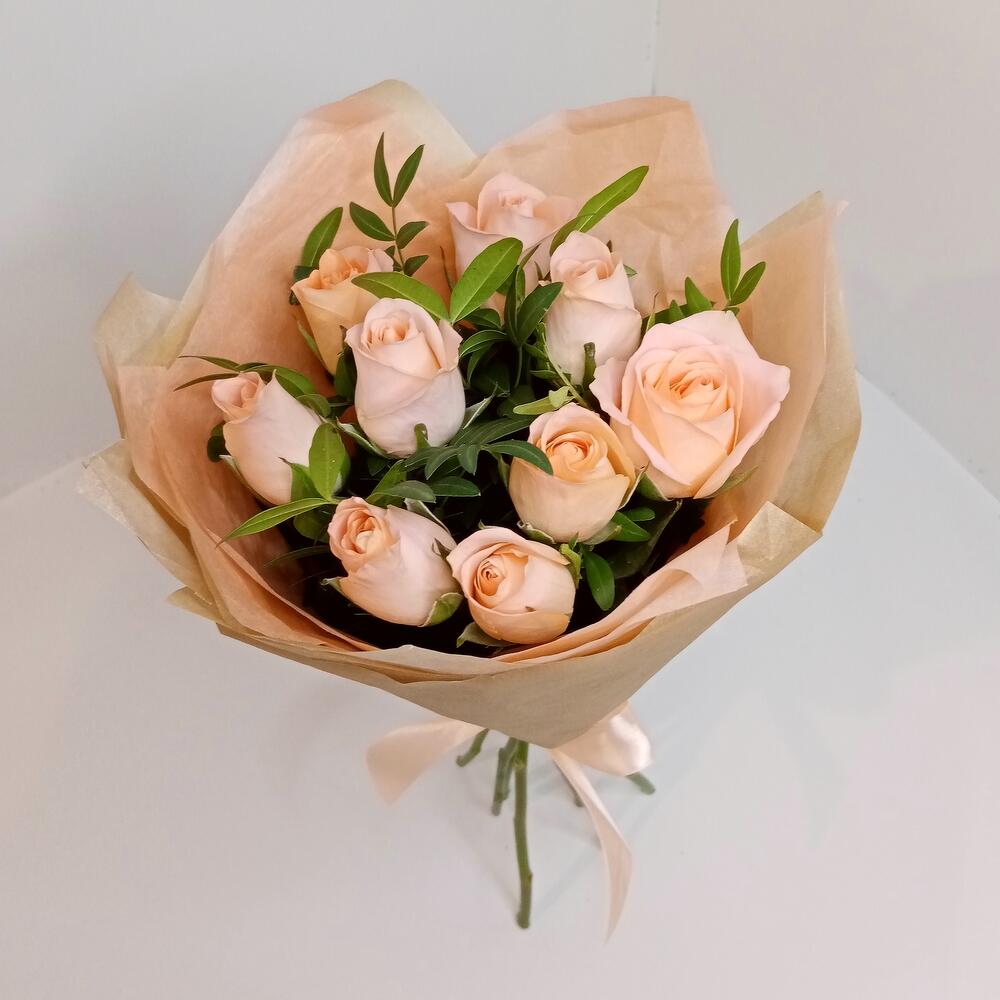 Букет из 9 роз персиковых с фисташкой