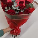 Букет из красных роз и эвкалипта