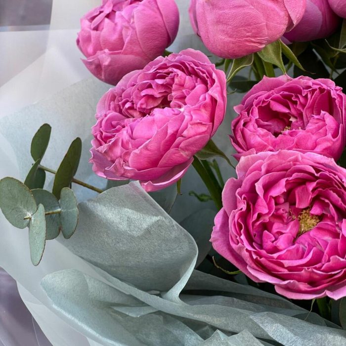 Букет из кустовой пион розы с эвкалиптом (СБ 001)
