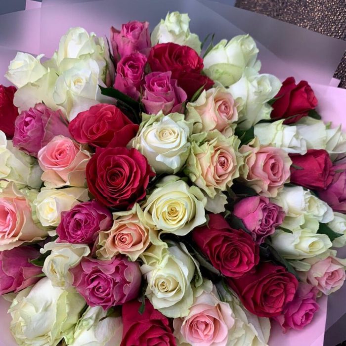 роза кения 40 см – 51 шт.Упаковка дизайнерская – 2 шт.Лента – 1 шт.