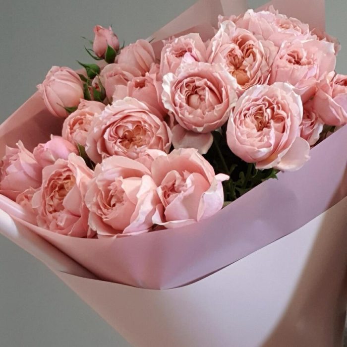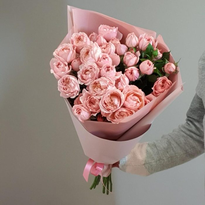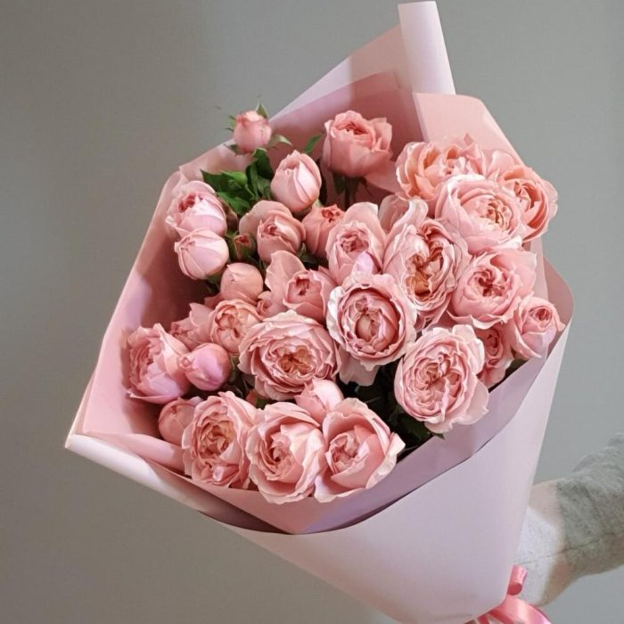 Упаковка – 5 шт.Лента атласная – 1 шт.роза садовая кустовая пионовидная – 9 шт.