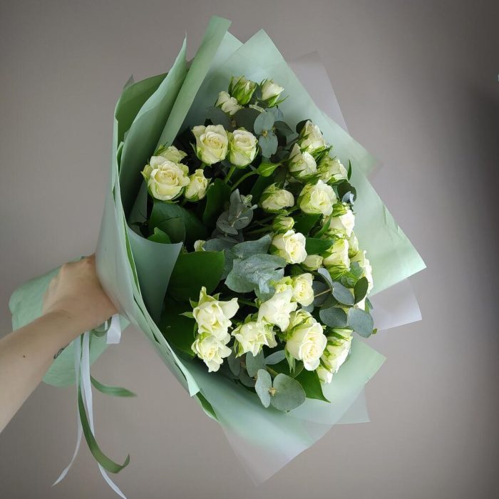 Букет кустовая роза с эвкалиптом