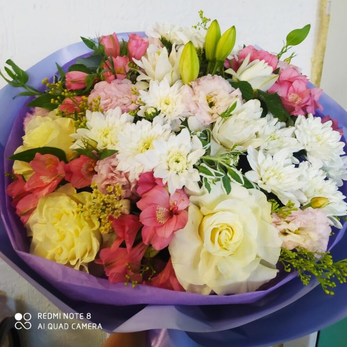 Категории: Альстромерии, Лизиантусы, Розы, Хризантемы