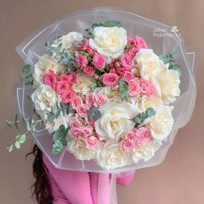 Эвкалипт – 3 шт. Роза – 15 шт. Кустовая роза – 11 шт.