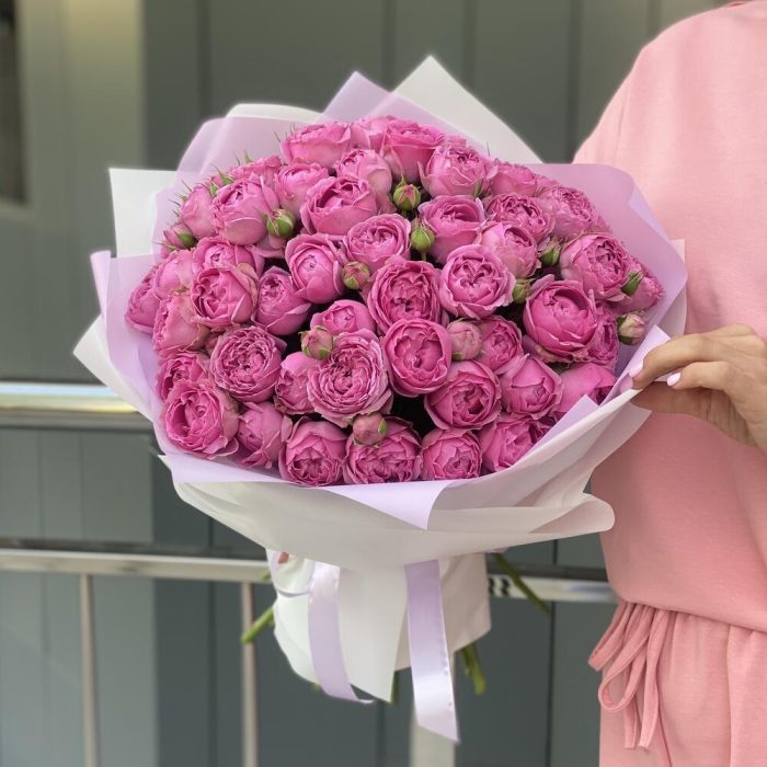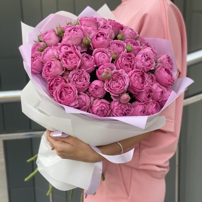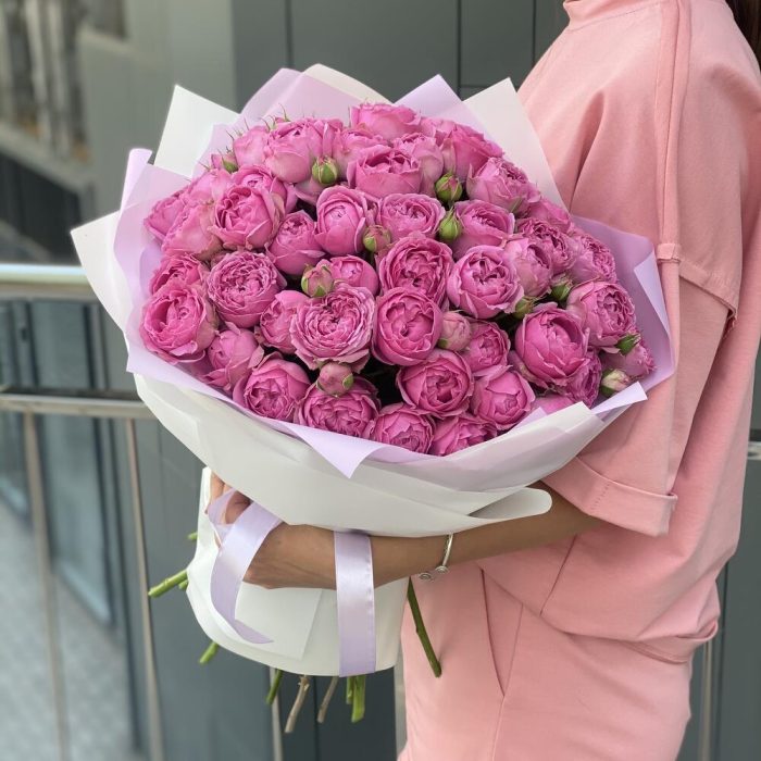 Букет из кустовых пионовидных роз в оформлении!