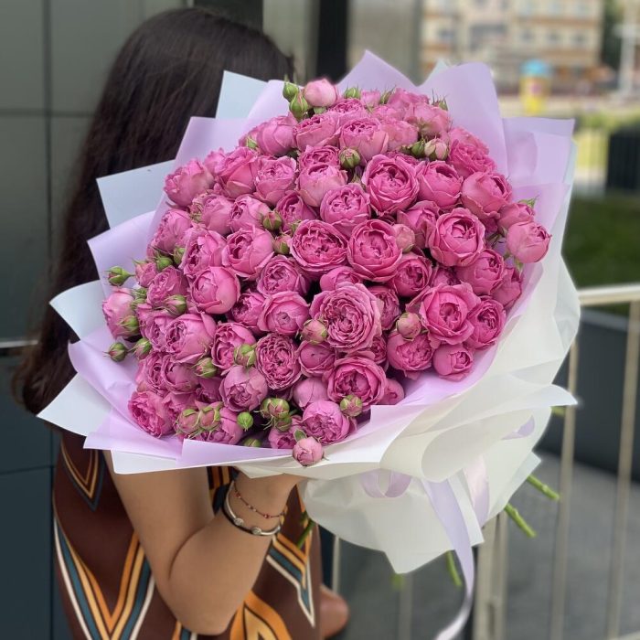 Писташ – 7 шт. Оформление – 1 шт. кустовая пионовидная роза misty bubbles – 25 шт.